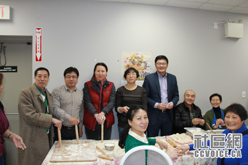 摆满美食的桌子四周,如此高参与度的群体性轮流接续手工操作,男女老幼全体围坐一起包饺子的状态在多伦多并不多见,现场透出一片华族喜庆的民俗欢乐气息。