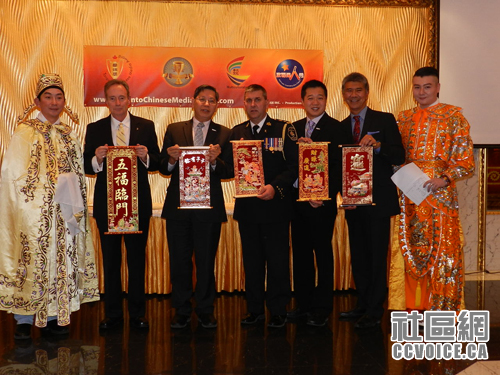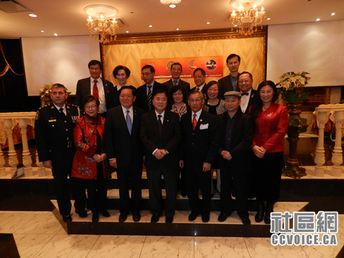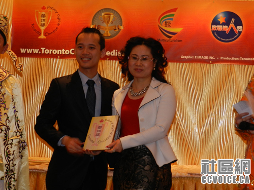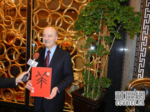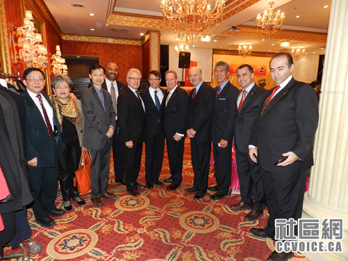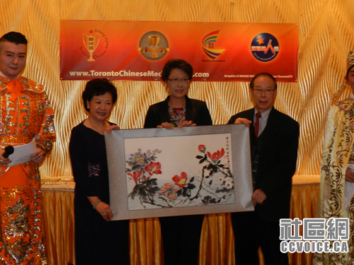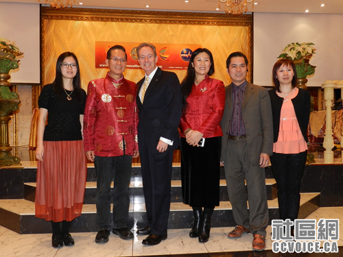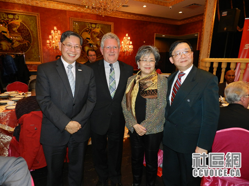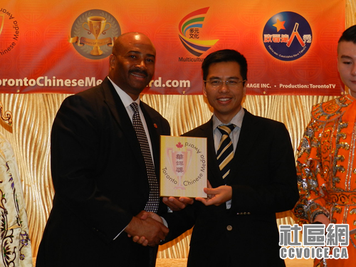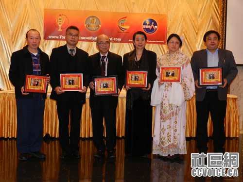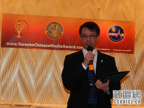 其三,老人新面孔。网络媒体界牛人叶军Kevin当晚的身份是中国广东省驻加拿大经贸代表处主任,所以他的位置晋升到嘉宾席,再也不能与媒体这群哥们瞎胡闹了。尽管Kevin与一般媒体不一样,在社区活动中露面不多,但当晚的身份还是在笔者意料之外。不过,这应该也是意料之中的事情,算是修成正果,跳出苦海了!