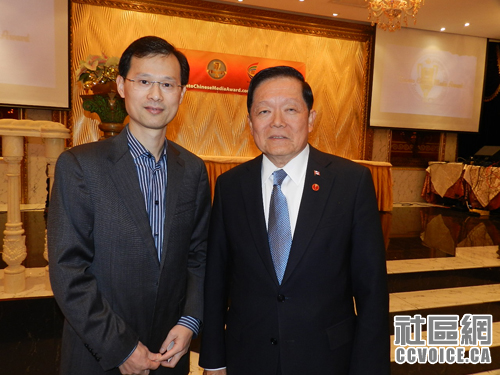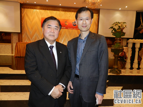 中国广东省驻加拿大经贸代表处主任叶军与联邦参议员胡子修先生合影