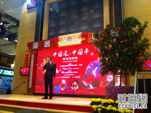 由中国中央电视台(CCTV)、中国网络电视台、央视网(www.cctv.com)和多伦多华裔媒体工作者协会(TCMPA)联合主办的“中国风 中国年 直播中国 陪您迎新春”活动2月8日下午1:30在锦绣中华拉开帷幕。联邦参议员胡子修、国会议员John McCallum、中国驻多伦多副总领事徐伟、安省公民移民与国际贸易厅厅长陈国治等众多嘉宾来到现场,与大家共度一起共度新春。