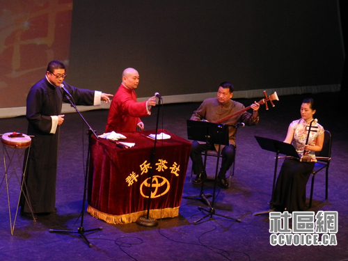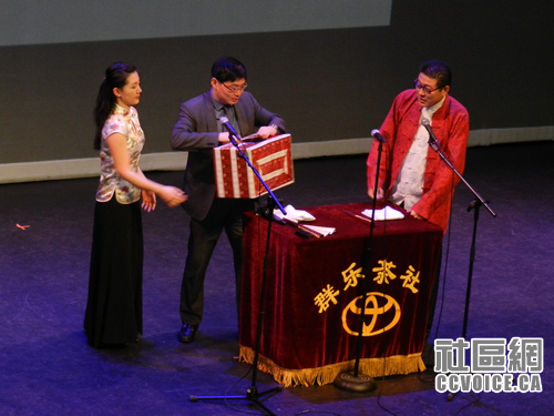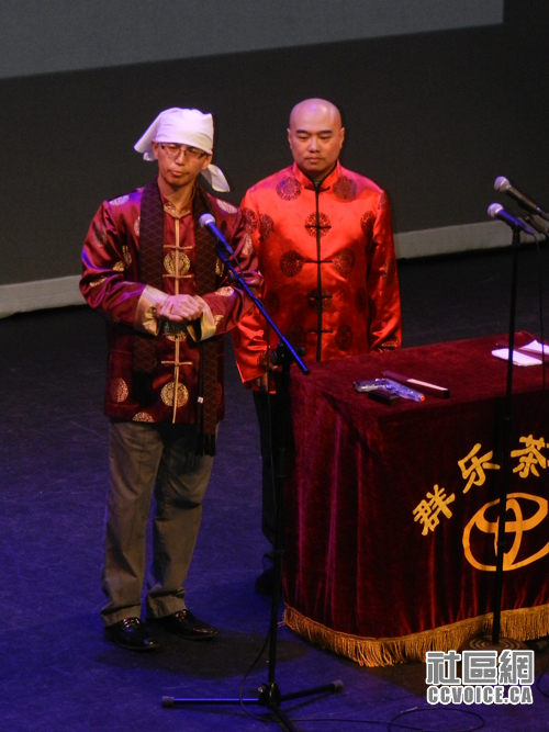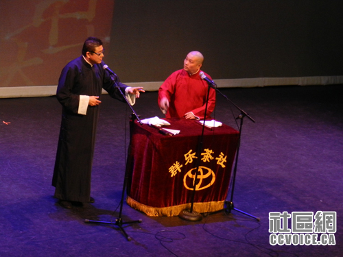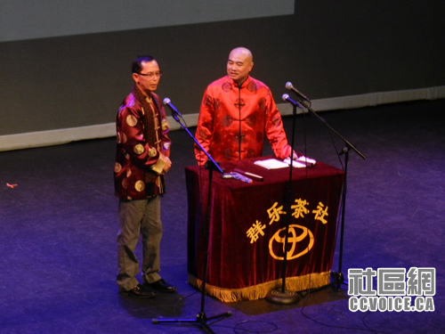 总体来说,今年的相声节目,群乐茶社的演员们动足了脑筋,牵头人也集思广益,不辞辛劳,采集移民生活好玩的点点滴滴。本次相声专场由安省华人汽车协会和 群乐相声曲艺茶社主办,加拿大华人同乡会联合总会、全加福建华联总会、艺术家中心等协办。两外,金融界才子王智、海外旅游、格外鑫集团、陈力保险等其他友人和企业也赞助本次演出。