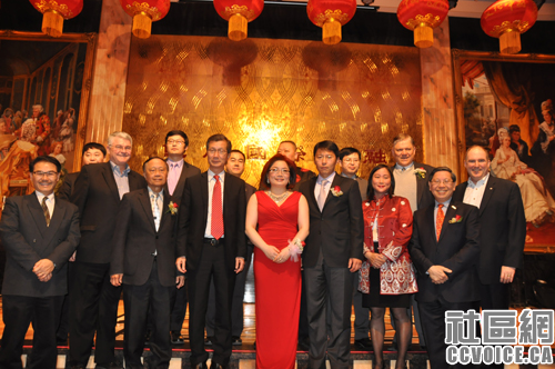 3月12日晚,加拿大鲲鹏国际金融公司在钓鱼台国宴成功举行新春晚宴,众多嘉宾与公司员工一道,庆祝羊年的到来。当晚嘉宾包括有安省公民、移民及国际贸易厅厅长陈国治、中国驻多伦多商务参赞于建伟、侨务领事钟洪糯、多伦多副市长Denzil Minnan Wong、市议员Jim Karygiannis、万锦市副市长Jack Heath、市议员何胡景和赵善江、烈治文山市议员陈志辉、多伦多华人团体联合总会主席魏成义、天合地产总裁公猛男和Don Valley North国会议员候选人谭耕博士等政商界人士,超过200人。