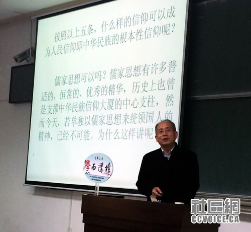 4月1日晚,潇潇春雨中,著名龙文化研究专家、龙凤国际联合会主席、西安中华龙凤文化研究院院长庞进走进西安交通大学校园,登上“学而讲坛”,以《龙道与中华精神家园–当下国人的信仰问题》开讲。在分析了儒、道、释各家都不能单独统领国人精神领域的原因后,系统地阐述了“龙道可以成为中华民族根本性信仰”的观点。