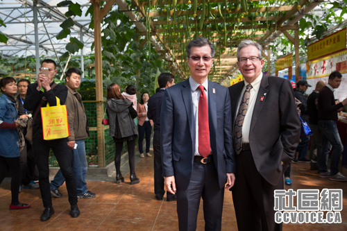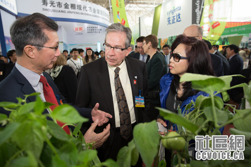 4月20日是国际蔬菜科技博览会的开幕日,来自全球40个国家和地区,以及中国内地数千家农业企业、万名客商云集寿光,开幕式人山人海。安省官员受邀为嘉宾出席当日的开幕仪式。安省代表团还参观了“菜博会”展台,并与部分山东的农业企业家举行了会谈。前任中国驻多伦多总领事房利也陪同安大略官员参观了菜博会。