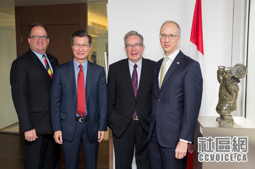 左起依次为总领事柏伊恩、陈国治、李尔和港加商会会长韦梓强