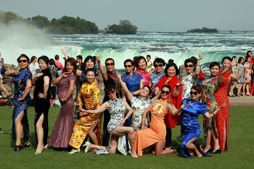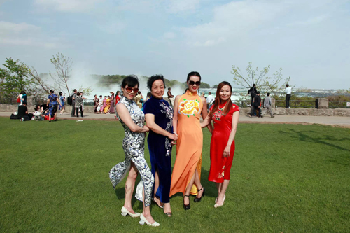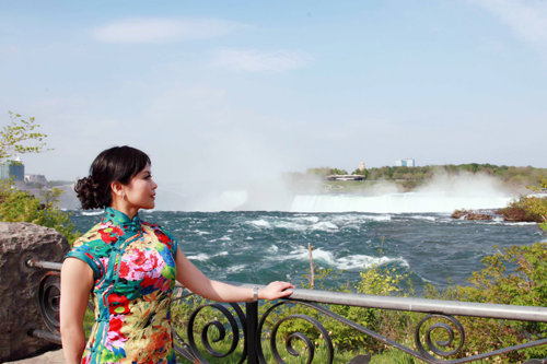 5月16日,加拿大多伦多与蒙特利尔50多名旗袍佳丽齐聚尼亚加拉大瀑布,以瀑布为背景举行旗袍走秀活动。中国旗袍会全球近420个分会场、近15万的女性同时身着旗袍走向世界 , 挑战“世界吉尼斯旗袍秀”活动,并已申请吉尼斯见证这一历史性的时刻,展示东方女性婉约典雅,弘扬和发展中华民族传统文化,让全世界了解中华旗袍文化的博大精深。(Nina/文,摄影:Michel/摄)