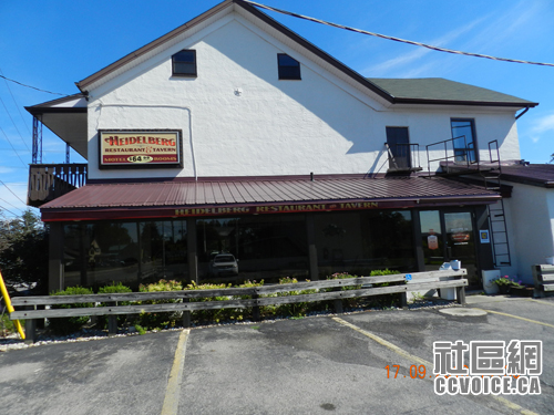 中午我们到达海德堡(Heidelberg)。这是一个美丽的小镇,离开St. Jacobs只有5分钟车程。这里地处曼诺之乡的心脏,教堂尖顶高耸,家家窗口摆着鲜花。我们是慕名去镇上的一家德国餐馆吃饭。餐馆名气很大,全名是老海德堡酒馆(The Olde Heidelberg Restaurant & Tavern)。这家老店始建于1860年,已有153年历史,产业一代一代传下来。从外表看,它就是普普通通的一所房屋,楼上是住房,楼下开餐馆。停车场上车不少,说明来客盈门。