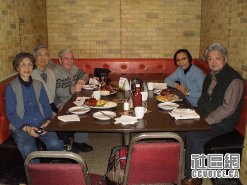 餐馆里面光线也不明亮,有几间餐室,餐桌古朴宽大,墙边有一架老钢琴,顾客盈门时,有老太太给大家弹琴,让食客边听德意志古典名曲,边吃他们的招牌菜熏猪蹄和红烧猪尾巴。说是猪蹄,实系蹄膀(Smoked Pork Hock),别认为猪猡猡上不了大雅之堂,这里济济一堂的食客就是奔它而来。周末一定要事先预订,否则只好一旁干瞪眼。我们那天是星期四,还好有空位。来客以中华儿女居多,很多是从多伦多周边一带赶来,为的就是来品尝这一道中国人爱吃的德国名菜。有的几家聚会,要几张餐桌拼接在一起才能坐下。