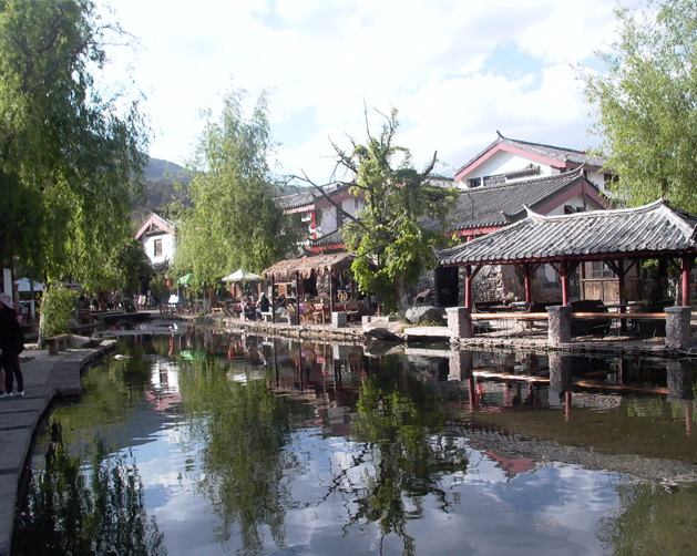 而束河古镇呢?作为丽江古城的一部分,她恬静如昔。当与世隔绝的宁静被打破后,束河也“晓起梳妆”,开门待客,但仍未丢失一派天然本色。当我在这里穿街绕巷之后,我能清清楚楚地看见她是怎样从千年以外一路风尘地走到今天的。我似乎感到自己正站在一座时光的桥头,往前,能看见古镇的由来,往后,能看清古镇的未来。而我此时此刻所属的时段,恰恰是对古镇历史和未来的衔接。前来探幽寻古的我渴望的正是这种岁月流线的完整链接。我想,凡来这里的人们一定会和我有着同样的欣喜的。