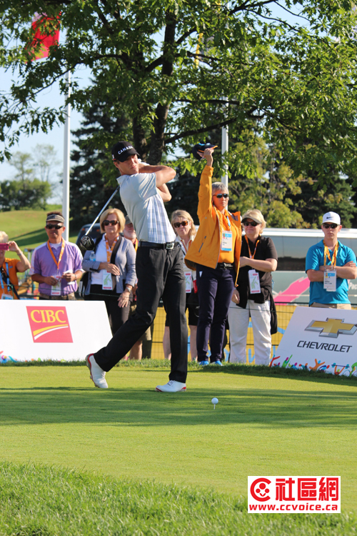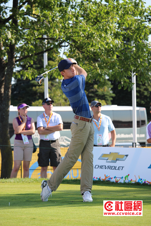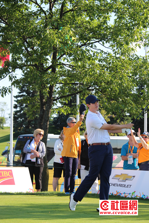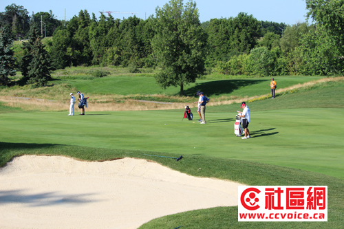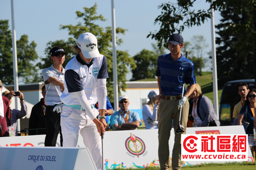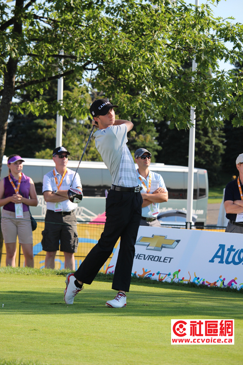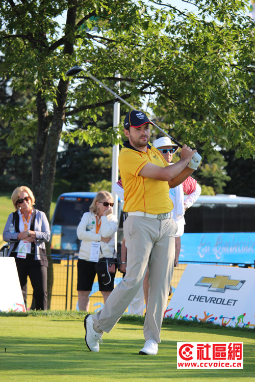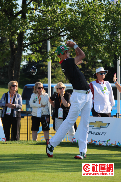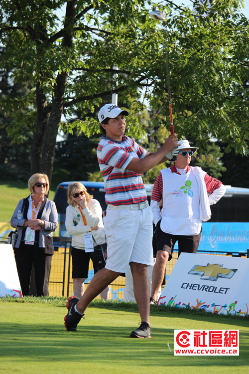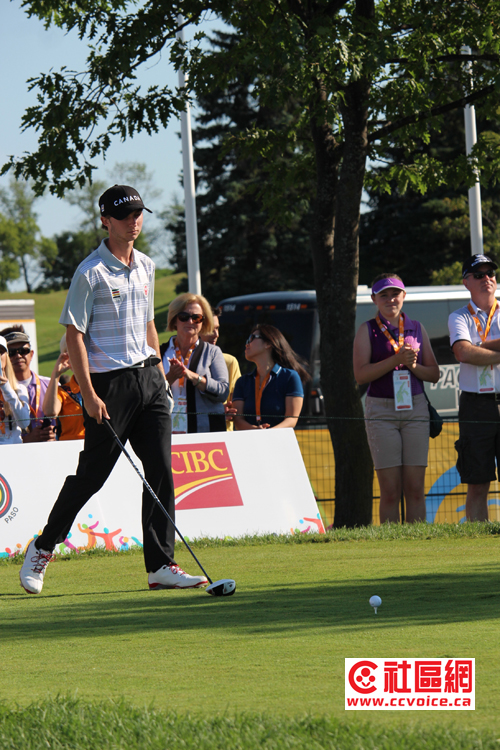 7月16日一大早,位于万锦市的Angus Glen Golf Club已经热闹非凡,泛美运动会高球运动从这一天开始在这里进行。早上8点开始,男子高球就开始了,每隔11分钟一组。高球比赛总共有18洞,加拿大队有两名选手参加,那就是Rank Garrett和Connelly Austin。