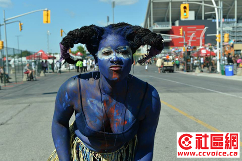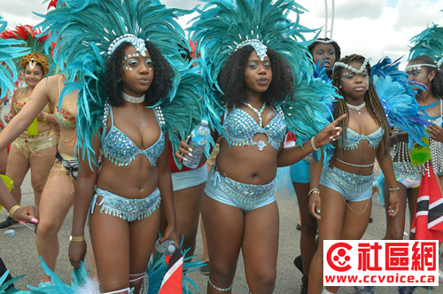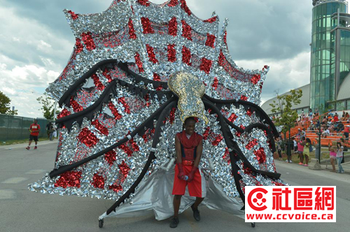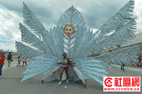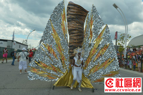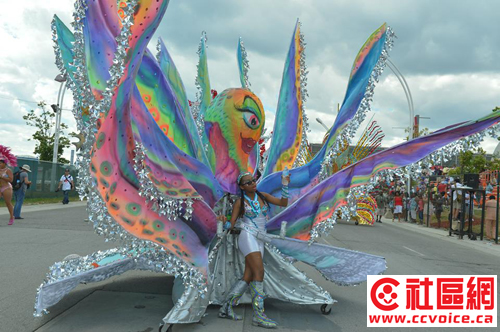 加勒比嘉年华大游行是多伦多加勒比嘉年华的重头戏,游行队伍中出现的丰富多彩的巨型装扮,是设计和制作人员花了好几个月的时间完成的。作为北美最大的加勒比嘉年华活动,当日的大游行吸引了超过一百万的游客,很多人来自美国,还有欧洲和亚洲来的观光客。(文/忠勤,摄影/Steven Zhao)