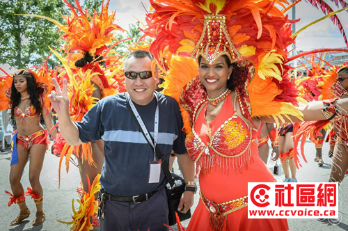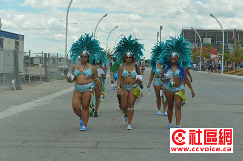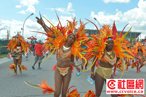 第四十八届多伦多加勒比嘉年华大游行于8月1日举行,上午十点,由多伦多市长庄德利、联邦国防部长肯尼、安省华裔议员董含鹏、加勒比嘉年华组委会成员以及赞助商枫叶银行代表和柳泉酒庄总经理黄振发共同剪彩,宣布游行开始。随后,独具加勒比热带风情的火辣装扮,钢舞表演者,一队接着一队沿街表演,吸引数以百万计的各国观赏者,十多个队伍中,都由一个巨大的装饰引领,参加者们载歌载舞,华丽的服饰,热情奔放的舞蹈,令人目不暇接,欢乐的气氛把整个嘉年华活动推向高潮。