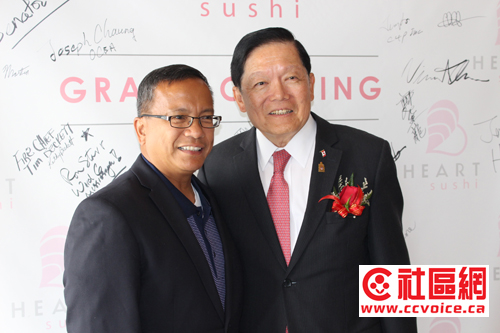 在众多嘉宾致辞中,参议员胡子修(Victor Oh)盛赞主人的创业精神,对他们在密市的投资,及创造就业机会,表示倾佩,予以高度赞扬。国会议员Bob Dechert也强调,中小型企业是加拿大经济发展的基石,正是千千万万像Heart Sushi的成功运作,他们不仅能方便社区,提供良好服务,而且能够创造就业,促进经济发展。