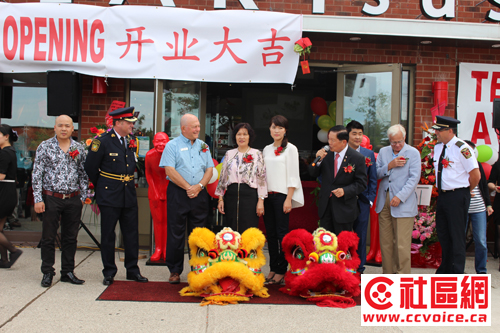 其他到场嘉宾还包括市议员Ron Star,多伦多华联会主席魏成义和元明超市总裁欧阳元生等。在剪彩之后,主人安排了隆重的舞狮庆典。最后,所有宾客应邀入内,享有精彩美食。