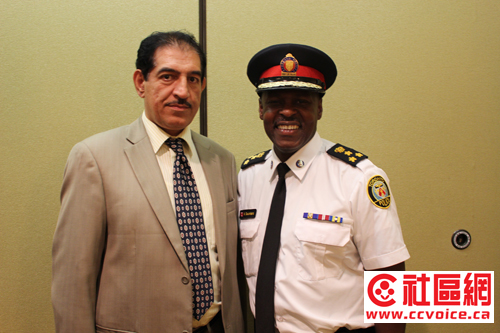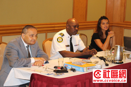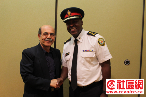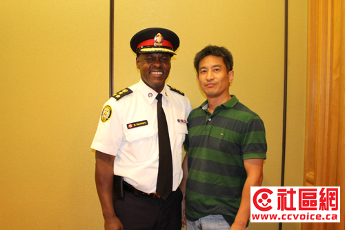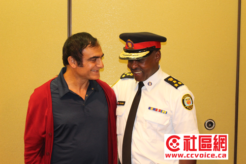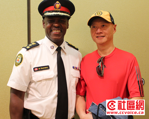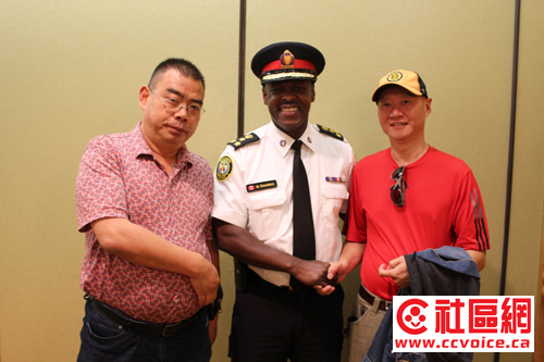在全国族裔媒体协会(National Ethnic Press and Media Council of Canada)月度会议上,多伦多警察总长(Toronto Chief of Police)Mark Saunders在8月10日晚上来到现场,回答大家所关心的问题。当天的提问之踊跃,问题之尖锐,可能说明大家对多伦多警察服务的关注。Saunders警长在多伦多警察服务部门已经干了32年,非常熟悉,对于大家的问题可以说是兵来将挡,回答的井井有条。