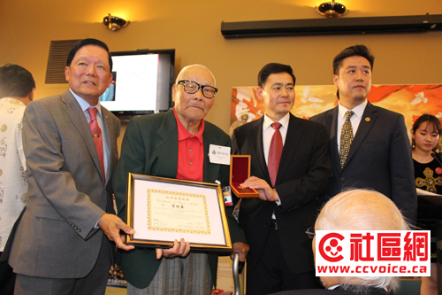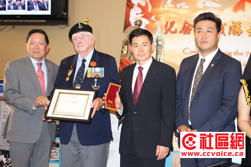 “荣誉功勋”纪念奖章及证书颁给了仍然健在的老兵宁仲康和范孟襄、白求恩(曾侄孙Stephen Lindley代领)、加拿大香港(保卫战)老兵协会25位仍然健在老兵(Austen Cambon代领,其兄长为抗战老兵)、Bill Campbell(其夫人Lois代领)、吴中将(遗孀吴周百合代领)、周锡年中将(遗孀周妈妈代领)、孙仲茂将军(夫人代领)、法玉臻上校(女儿法孟代领)、肖劲光大奖、陈国柱将军等(亲属陈国正代领)、沈万山八路军将士(女儿沈晓光代领)、向守全将军(女儿向希拉代领)和耿科八路军将士(亲属赵青代领)。社区侨领王裕佳、钱大伟、刘美玲、欧阳元森、张俭、川沙、周旭、粱荣纳和黄政等也授予了证书。