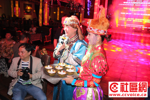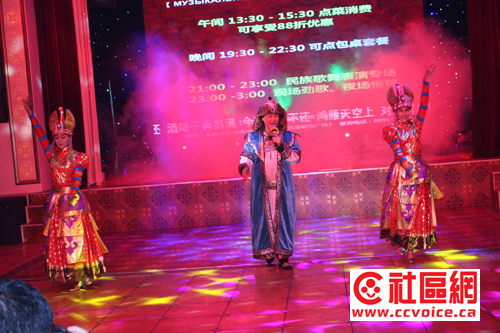 整个餐厅装修很有特色,有古老戏院的感觉,同时装修也很民族化。让记者吃惊的是,全部满座,还有一批客人遭拒,看来这个地方在本地还是很有名的。一阵忙碌之后,服务生才相继给大家送上吃的。也许是大家肚子太饿,也许是人多量少,所有的东西都是一下子席卷残云,似乎还没有吃出什么特别的味道。唯一的好处是奶茶不断。9点演出开始之后,我们的经历就放在欣赏上了,在吃的方面,留下印象的只是带有羊头的那一大盘羊肉,遗憾至今还不知道菜名。
