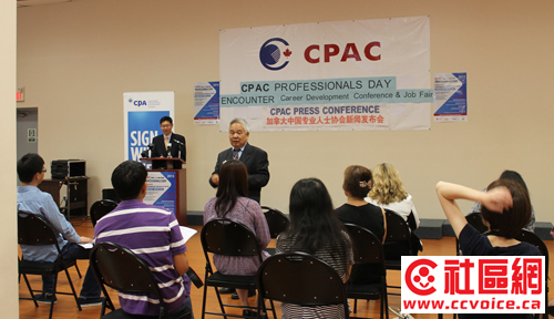 加拿大中国专业人士协会(CPAC)执行总监时安迪先生在今天的新闻发布会上宣布:旨在帮助海外背景的专业人士(ITPs)在职业以及专业上得以发展的专业盛会,第十四届CPAC“专业人士日”暨招聘会将于9月26日在Armenian Youth Centre举行。