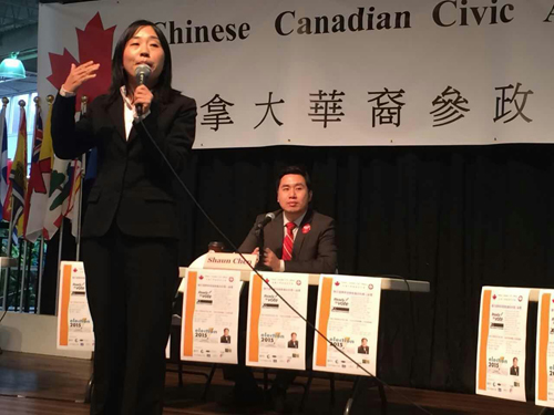 加拿大华裔参政同盟10月3日在万锦市城市广场主办“联邦选举论坛”,联邦保守党、自由党及绿党的候选人出席,并向市民阐述参选的理念及呼吁合资格的选民出来投票。