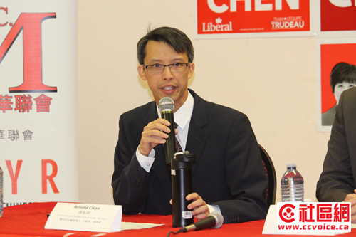 在候选人简单介绍的阶段,作为已有国会议员经验的陈家诺(Arnold Chan)特意介绍保守党执政10年来在经济、移民政策等方面的失误。陈家诺着重指出,在Justin Trudeau领导下,自由党有计划、有能力去修正错误,将加拿大建设得更加美好。
