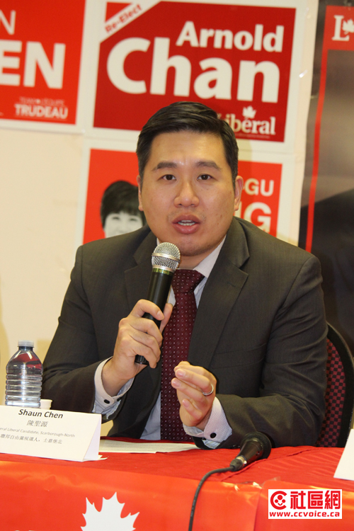 而Shaun Chen从自己的经历,特别是自己父母的移民成长经历中,对比自由党和保守党所采取的政策。尽管他的父母没有机会上大学,但是凭借自己的努力工作,他们有能力找到工作,买车、买房子,过上体面的生活。而不像今天的年轻人,大学毕业之后,还无法找到理想的工作,失业率高居不下。对于祖父母对自己的看护,他深感家庭团聚移民的重要性。