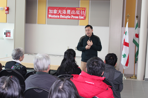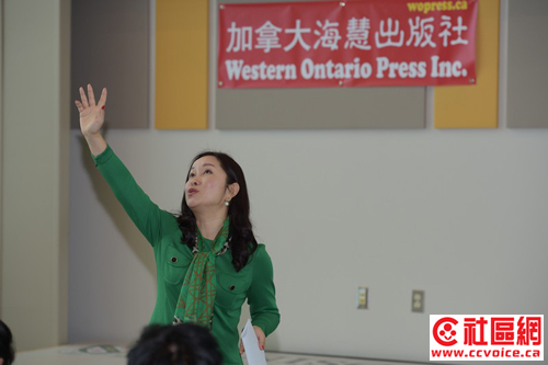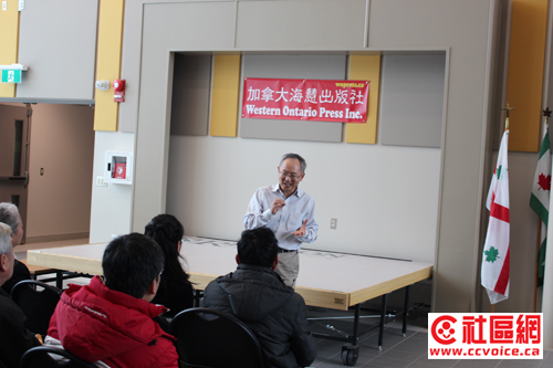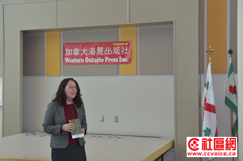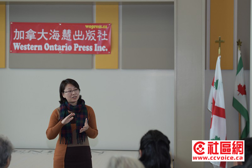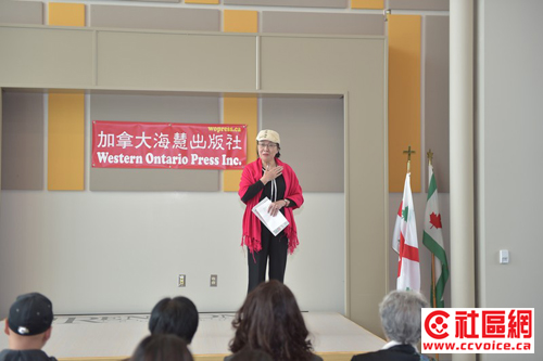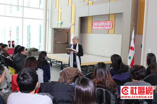 轻松的开场白之后,主办方之一、孔子学院院长李彦教授讲话。对于过去28年在加拿大的生活,她用“上过天堂,下过地狱”来形容。至于创作,李彦院长谈到,在过去相当长时间内,文学创作在滑铁卢华裔社区可以说是一片荒漠。不像大多伦多地区,华裔人口超过50万,华语创作也是百花齐放。也许正是这份寂静,李彦院长觉得自己能够沉下心来,一部接一部,撰写了12部中英文书稿。李彦教授特别提及近两年由新移民郭绍武老师所创设的“读书慧”。她笑称这个小组的出现,犹如一艘破冰船将在冻土中播撒文学的种子,希望将来有更多的人热心阅读、尝试创作。