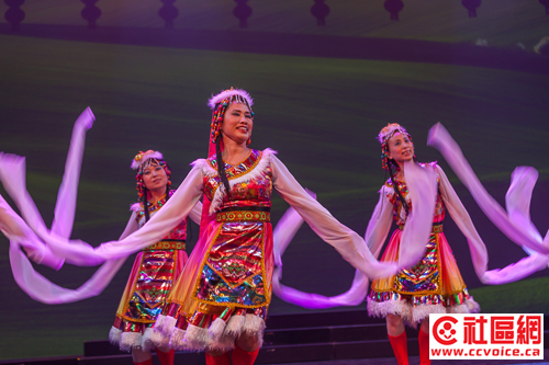 藏族舞蹈“吉祥瑶”在富有动感的舞蹈中,送上新春的浓浓祝福。而少儿舞蹈《快乐宝贝》感受儿童们的高兴、幸福的同时,也无不体现家长对下一代的关注与期盼。在歌舞中,主办方负责人登上舞台,公布当晚所筹善款数目,新医院也派出代表,接受Oakville华人联盟所筹集的善款,总计$5,889,并表示赞赏与深深的谢意。在谢峰嘹亮的歌声“我爱你中国”,慈善晚会拉上了帷幕,期待来年再会。(摄影:胖哥曾一)