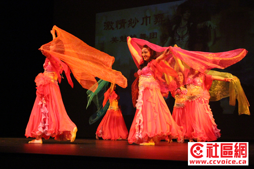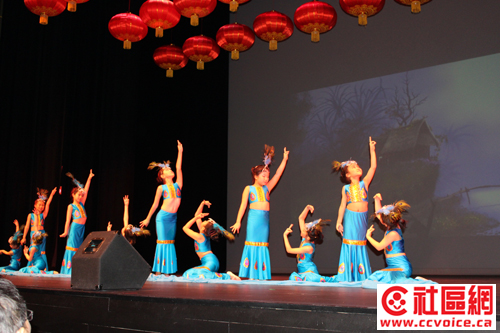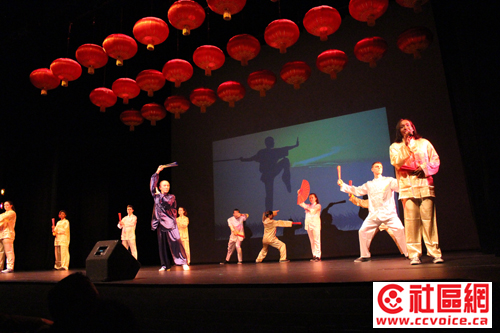 姐妹花Molly和Melosa的二重唱,博得掌声阵阵,两人不同的音色与音调相配合,真是天衣无缝,加上See You Again的优美曲调,十分动听。黄伟的男生独唱“鸿雁”在女子俱乐部的曼舞之下,更是引人入胜。从小品专家传成歌手,黄伟潜力无限。正如记者朋友所言,他最喜欢的节目就是孔子学院提供的表演唱“中国功夫”,10位非华裔身着中国传统服装,手持功夫扇,演唱“中国功夫”,同时演艺中国功夫,对加拿大多元文化进行了很好的诠释。