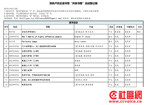 如若,您也与我们有一样的想法,欢迎联系“书屋跑堂”花花,只需按统一格式整理出分享书单,我们会定期汇总发布。借书人与共享者通过读书慧微信群、线下活动、自主联系一对一开展免费借阅活动。读书慧的公共图书书目我们也将一并整理发布。