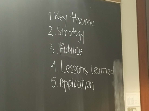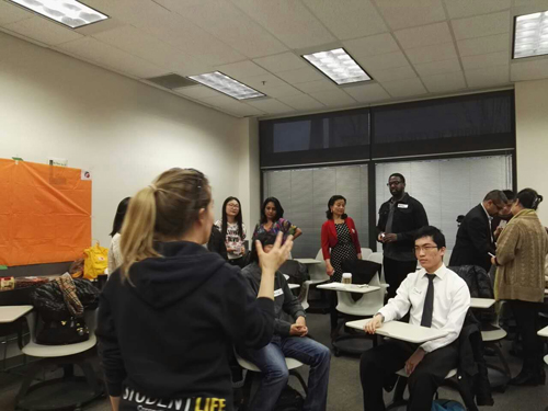 两位嘉宾演讲之后,现场组织小组讨论。主持人Jessica建议大家从主题(Key Theme)、技巧(Strategy)、建议(Advice)、自己所学到的(Lessons Learned)以及如何应用(Application)等方面讨论。大家分享的心得大体有,第一,说话速度要慢,让听众听懂;第二,要明确自己的语言,其实这是离不开对观众的了解;第三,在演讲过程中,善于请听众分享经验。