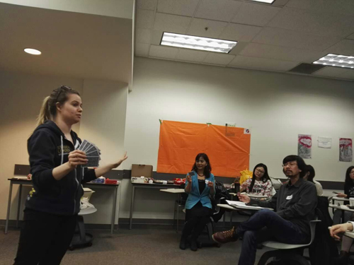 活动开始由“百分百”俱乐部主席,加拿大教育协会副总裁Martina宣布该次活动主题。为活跃现场,多大教育专业研究生,也是该次活动促动师Jessica带领大家玩破冰游戏(Ice Breaker)。接下来,主办方邀请两名嘉宾做主题演讲,关注演讲技巧。