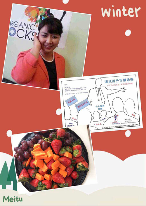 首先出台的是记者的老熟人,Sophie Duan,她移民加拿大近二十年,是多桥社(M-Bridge)创办人和主席,加拿大公益和移民社会活动家。多桥社为加拿大联邦注册的非盈利组织,帮助移民通过学习加拿大社会和职场文化,提升英语沟通能力和连接主流社会去融入加拿大社会。Sophie Duan的演讲主题是“家(Home)”,声情并茂,情谊动人。第二位演讲嘉宾是Toastmasters 获奖者(Awarding Winning Speakers from Toastmasters)Martina Kobby,演讲中穿插有不少的提问,与听众互动很强。