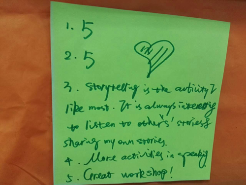 接下来的活动还包括测试你的倾听(Quizmaster),由多大教育专业博士冲突管理专家Paul现场提问,最后的环节当然少不了大家的活动反馈(Final Reflection Activity),促动主办方在将来完善,提高。
