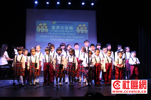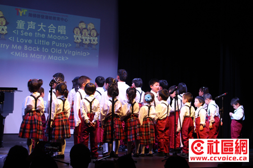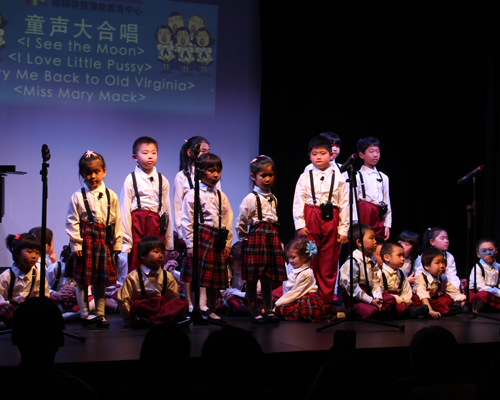 几位小提琴表演者的表演也相当出色,尽管他们尚不能站在专业舞台上,但是谁知道,他们之中不会有天才小提琴家出现呢?节目最后当然是童声大合唱结束,演唱曲目不少,包括有“I See the Moon”、“I Love Little Pussy”、“Carry Me Back to Old Virgina”和“Miss Mary Mack”。无论从歌唱,还是队形,小演员的表演都很不错的!