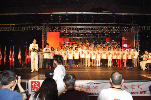 5月29日星期日,多伦多迎来了七十七年来破纪录的高温天气,同时也迎来了一场有史以来破纪录的大型捐款义演活动。由加拿大国家电视台龚晓华台长倡导,百余家社团积极响应,三千多海外华人华侨热情参与的感人至深的赈灾义演,在若大的加拿大国家电视台艺术中心进行着。