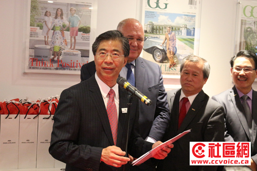 万锦市市长Frank Scarpitti率领众市议员出席该次开张庆典,他非常高兴安阁置业万锦市的成立。他指出,万锦市是加拿大最多元的地区之一,文化遗产丰富、社区规划优异且区域经济活跃,历获加拿大工作场所质量及健康金奖和多元文化遗产、环境等多个奖项。相信正如当天好日子所意,新公司会发展迅速和顺利,为万锦走向世界出一份力。而中国驻多伦多总领事馆商务参赞于建伟先生也热烈恭贺万锦安阁置业的成立,相信Sophia及其团队取得更大的成绩。