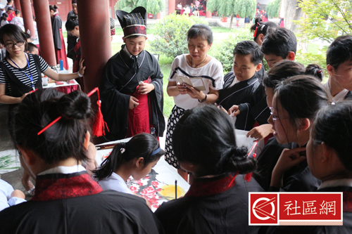尽管当日气温有些炎热,大家穿着传统的汉服并不十分舒服,但是活动本身对小孩来说,就是中华传统文化的最好体验。其实,即使是对于我们领队来说,也是一次很棒的学习机会。但150多名青少年朗朗跟读誓言、《弟子规》和《鹿鸣》,也许他们并不十分明白其中的内容,但相信他们有深刻的印象。