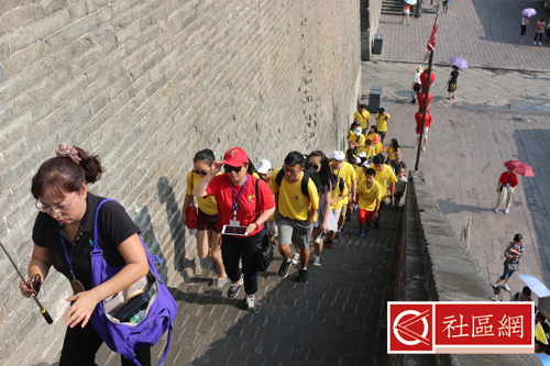 7月24日,“寻根之旅”陕西行上午的活动内容是参观西安城墙。西安城墙又称西安明城墙,第一批全国重点文物保护单位。广义的西安城墙包括西安唐城墙和西安明城墙,但一般特指狭义上的西安明城墙。西安明城墙位于市中心区,是中国现存规模最大、保存最完整的古代城垣。墙高18米,顶宽12-14米,底宽15-18米,轮廓呈封闭的长方形,周长13.74公里。城墙内人们习惯称为古城区,面积11.32平方公里,著名的西安钟鼓楼就位于古城区中心。