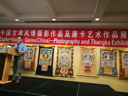由甘肃省对外文化交流协会主办的“中国·甘肃民族风情摄影作品和唐卡艺术作品展”8月10日在万锦市爱德华酒店举行。本次活动从多个方面向加拿大民众介绍了中国甘肃迷人的自然风光、悠久的民族历史、灿烂的中国文化,以及丰硕的社会经济发展成就。