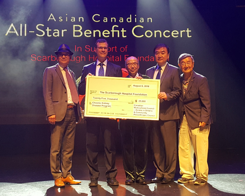 加拿大安省亚裔多元文化协会与士嘉堡医院基金会属下社区慈善理事会在刚过去的周末於大多伦多中华文化中心合办了一场慈善音乐会,共筹得善款超过二万五千元,用作支持士嘉堡医院的慢性肾病防治计划。