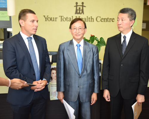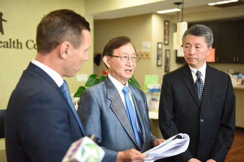 安省进步保守党党领彭建邦(Patrick Brown)今早联同该党士嘉堡红河区省议员候选人赵成俊(Raymond Cho),就自由党的医疗削支对广大病人的影响,在士嘉堡跟安省医生协会(Doctors Ontario)临时主席麦国道医生(Dr. Douglas Mark)会面。本身是资深家庭医生的麦国道,在士嘉堡居住及执业长达30年。他表示在其30年的执业医生生涯以来,从未遇到过如现时自由党般对待本省的医生和病人、如此大幅度的削减医疗拨款。
