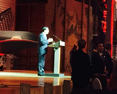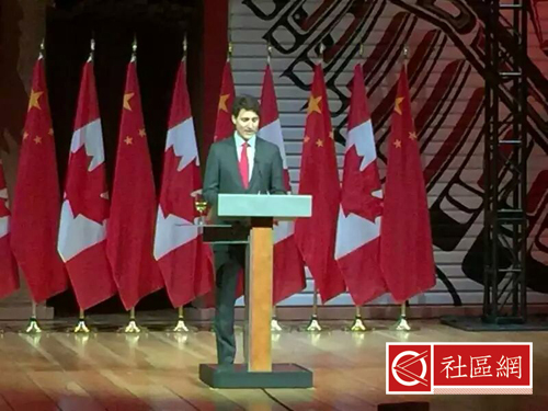 9月22日晚7点,加拿大总理Justin Trudeau携夫人Sophie Grégoire Trudeau恭迎中国总理李克强和夫人程虹。该次晚宴在与渥太华遥想对应的魁北克,加拿大历史博物馆内举行。在晚宴前,两国总理都做了热情洋溢的讲话。