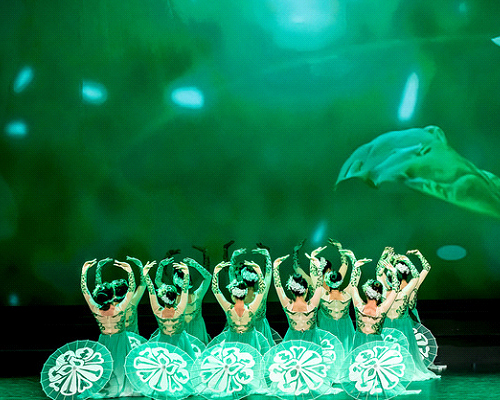 奔放、豪爽、缠绵、惜别 ….. 的《红高粱》,将三首西北民歌衔接、交错在一起,舞蹈动作在道具、背投及强烈的灯光效果渲染下,让观众如身临其境,产生强烈的震撼共鸣