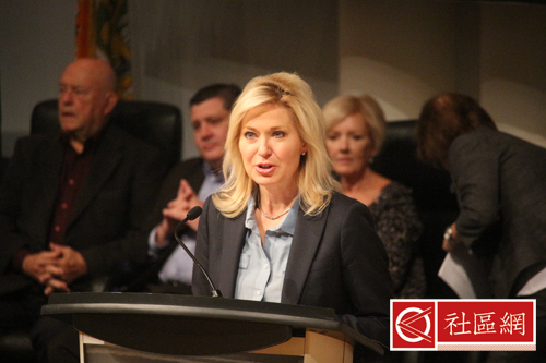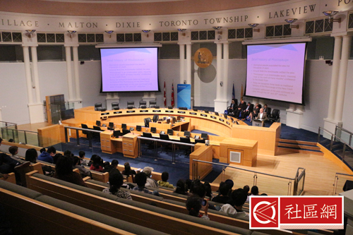 在十多种不同族裔语种问候之后,市长Bonnie Crombie对大家的到来表示欢迎。在市长言辞里,她当然对密西沙加的地理、人文与历史赞美有加。市长特别指出,在同僚诸位市议员的努力下,密西沙加将变得更加美好。市长讲话之后,市府工作人员Brand Manager David Ferreira为新移民介绍加拿大政权机构,以及密西沙加的历史,记者相信,在座者有许多人需要这样的重要信息。