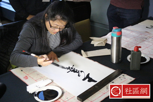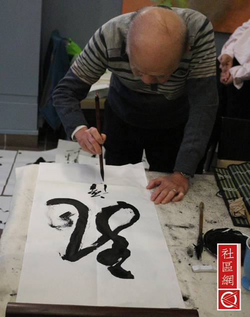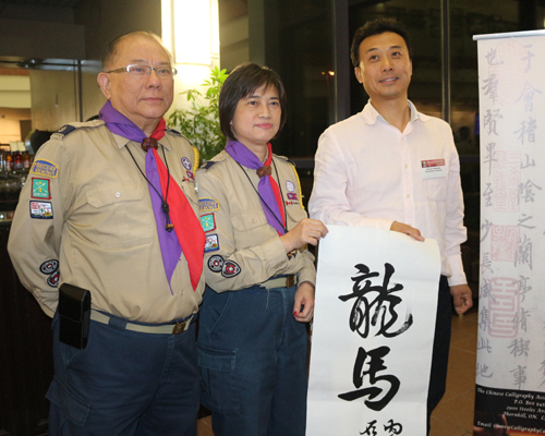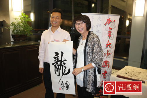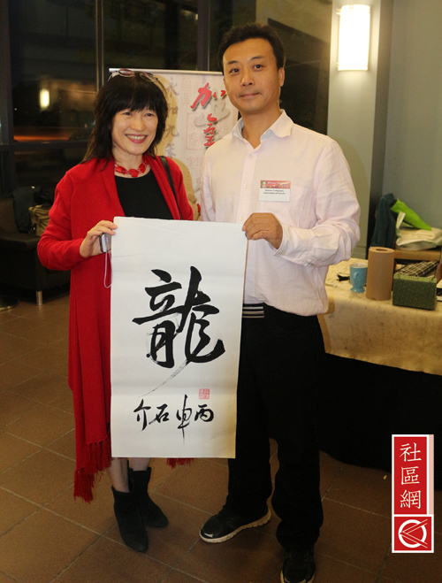 加拿大中国书法协会活动现场–谭先生为记者撰写“龙”字