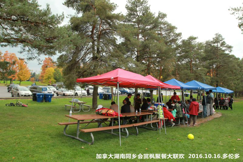 当天的活动内容相当丰富,公园内的几条赏枫路线上,不是传来湘音的惊喜,那是老乡们在探寻不同颜色的树木,被自然界的美丽所感动。前一天才刚从中国访问归来的联邦国会议员谭耕博士忘不了故乡情,出现在活动上,并积极与大家合影留念。而在摄影师忙碌的背影下,大家都有机会留下合影或者合家欢倩影。更为重要的是,每人自带的拿手食物,浓浓湘味串烧其中。即使是小孩,也三五成群,找寻着自己的快乐。