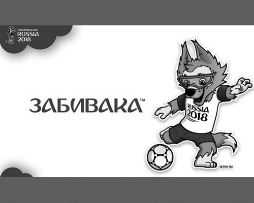 俄罗斯选定一只佩戴运动护目镜的卡通狼形象为2018年世界杯吉祥物。官方在俄罗斯电视台上宣布,这只叫“扎比瓦卡(Zabivaka)”的狼在网上投票中得到了超过100万票,打败了另外两个候选形象–一只猫和一只身穿太空衣的老虎。在长达一个月的投票活动中,扎比瓦卡赢得了53%的选票,老虎和猫则分别得到27%和20%的票数。