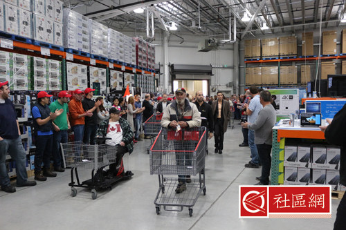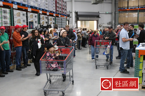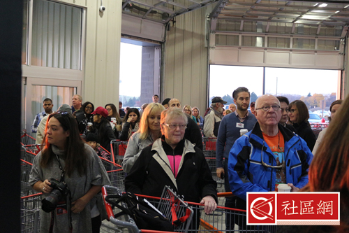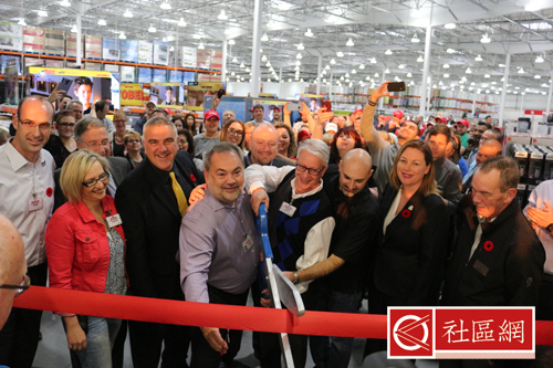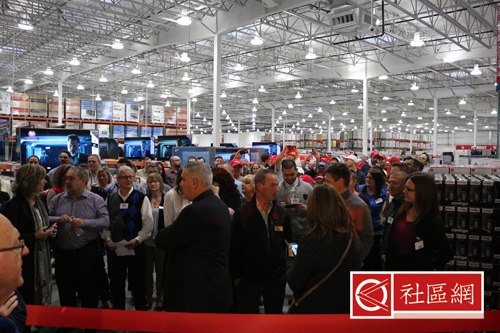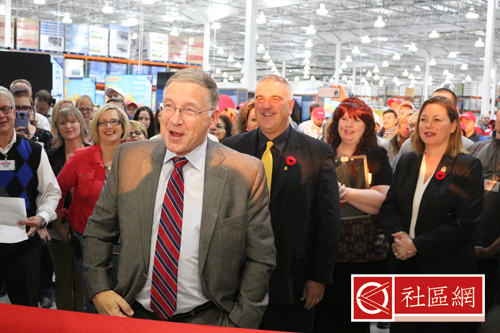 最后,总经理Ken Shantz介绍说,“欢迎大家来到全新的Costco滑铁卢店,作为Costco 23年的资深员工,我深信滑铁卢店会创造辉煌!在感谢顾客厚爱的同时,我也要感谢200多员工的团队,他们是最棒的!”嘉宾致辞之后,剪裁仪式举行。大部分员工列队两旁,夹道欢迎在开业日到场的顾客们。