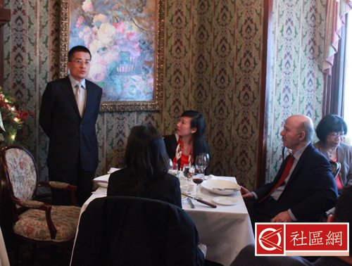 12月9日加中商贸创新联盟理事会在大多伦多具有一百五十余年历史的文化艺术酒店内,成功举办商务交流,圣诞午餐会。 中国驻多伦多总领馆商务参赞鄂德峰、商务领事李燕华、安省研究、创新和科学厅长Reza Moridi、列治文山市议员Godwin Chan、万锦市议员Amanda Yeung Collucci等出席午餐会。每位理事在温馨愉悦的午餐会间,畅谈公司发展并分享其与中国合作的经历。