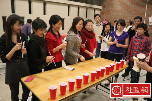 第四个游戏是投掷吸管。将手中的吸管,远远地投入空的纸杯中。第五个游戏是搭杯子游戏,用1、2、3和4只纸杯子,中间放上纸盘子,看谁又快又稳搭建好。原来计划的八只俱乐部成员队,后来临时组建了两只男队参与。经过激烈的竞争,男队竟然最后胜出,获得当天的比赛冠军。估计是女将手下留情,让“男队”获胜,与他们分享自己的那份快乐。